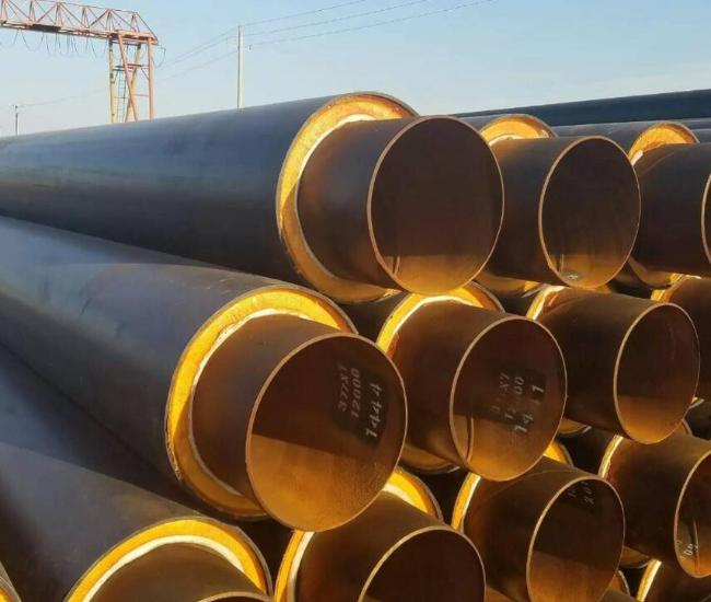 2. 聚氨酯保温层‌:采用高压发泡机在钢管与外护层之间形成的空腔中一次性注入硬质聚氨酯泡沫塑料原液而成,密度一般为50kg/m³至80kg/m³。聚氨酯泡沫层具有良好的隔热性能和耐腐蚀性能,导热系数一般为0.023W/(m·K)至0.038W/(m·K),能够有效减少管道热损失。